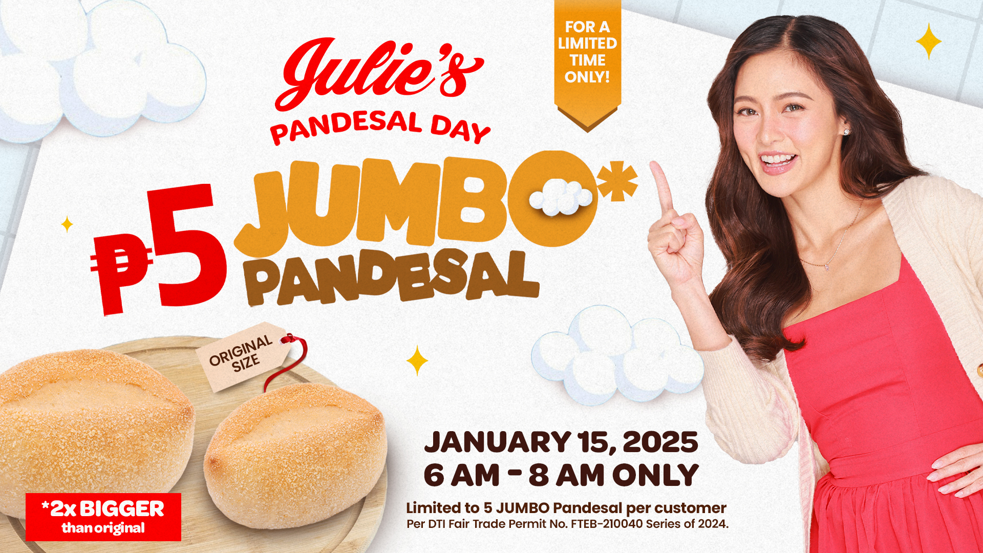To give everyone a fair chance to grab their JUMBO Pandesal, Julie’s Bakeshop has also limited the purchase to 5 pieces per customer only.